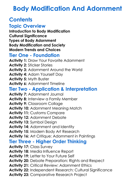 Body Modification And Adornment Worksheet Activity Booklet