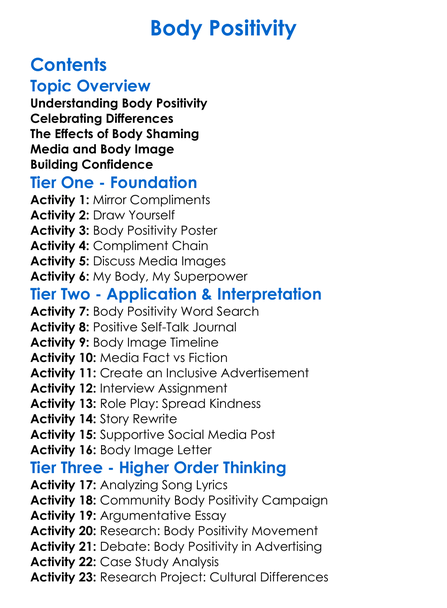 Body Positivity Worksheet Activity Booklet