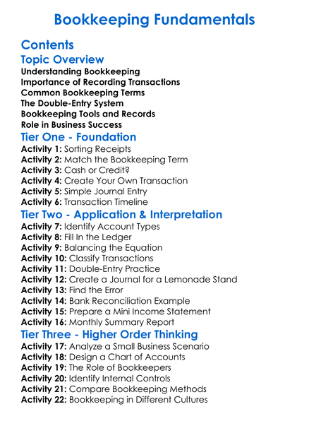 Bookkeeping Fundamentals Worksheet Activity Booklet