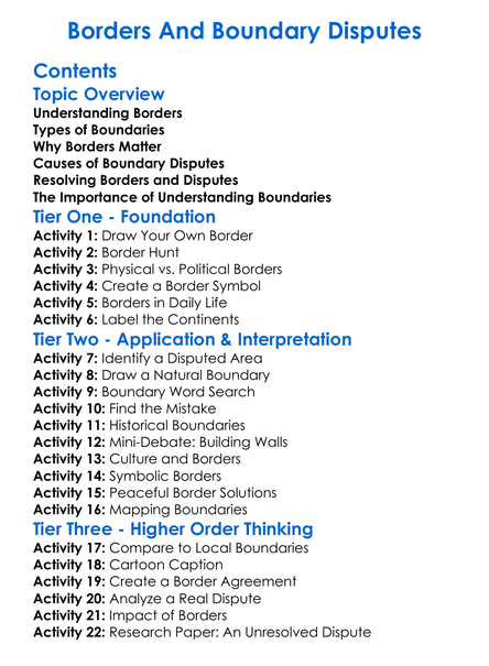 Borders And Boundary Disputes Worksheet Activity Booklet