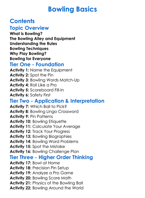 Bowling Basics Worksheet Activity Booklet