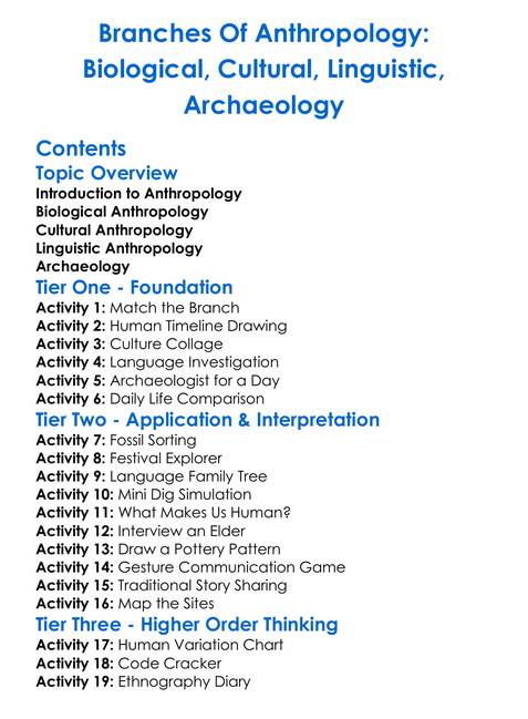 Branches Of Anthropology Biological Cultural Linguistic Archaeology Worksheet Activity Booklet