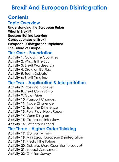 Brexit And European Disintegration Worksheet Activity Booklet