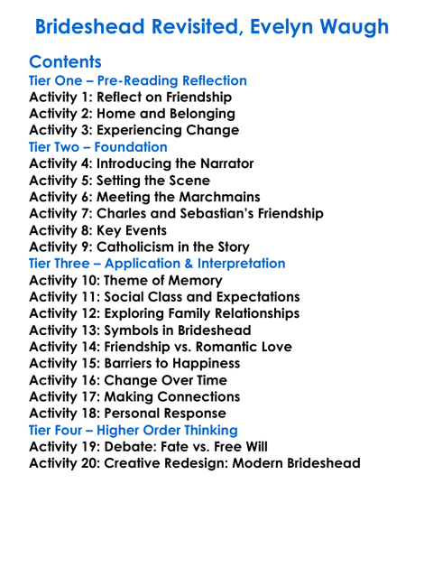 Brideshead Revisited Evelyn Waugh Worksheet Activity Booklet