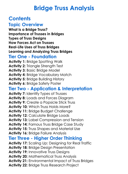 Bridge Truss Analysis Worksheet Activity Booklet