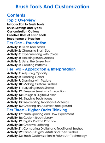 Brush Tools And Customization Worksheet Activity Booklet