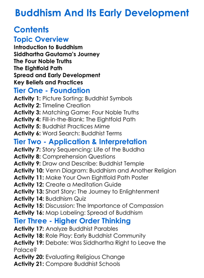 Buddhism And Its Early Development Worksheet Activity Booklet