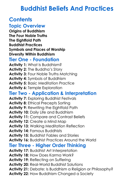 Buddhist Beliefs And Practices Worksheet Activity Booklet
