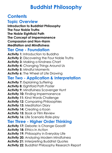 Buddhist Philosophy Worksheet Activity Booklet