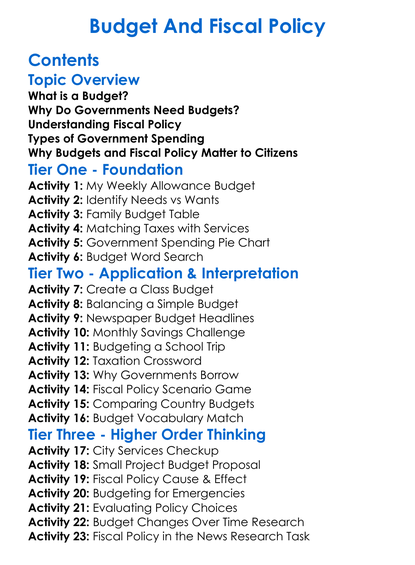 Budget And Fiscal Policy Worksheet Activity Booklet
