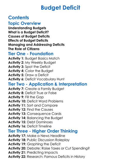 Budget Deficit Worksheet Activity Booklet