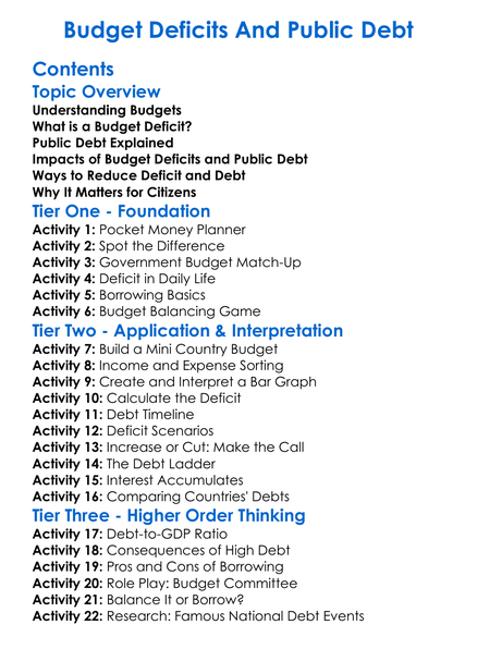 Budget Deficits And Public Debt Worksheet Activity Booklet