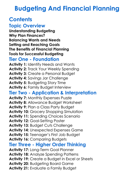 Budgeting And Financial Planning Worksheet Activity Booklet