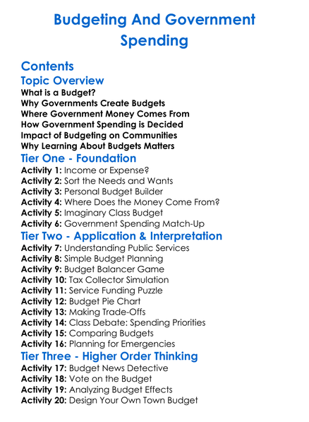 Budgeting And Government Spending Worksheet Activity Booklet
