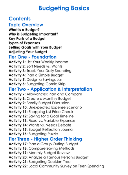 Budgeting Basics Worksheet Activity Booklet