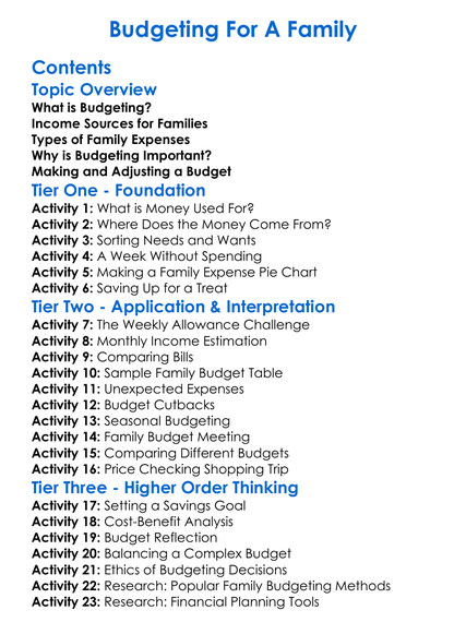 Budgeting For A Family Worksheet Activity Booklet