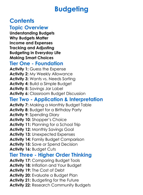 Budgeting Worksheet Activity Booklet