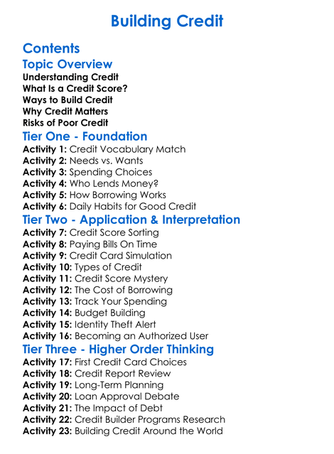 Building Credit Worksheet Activity Booklet
