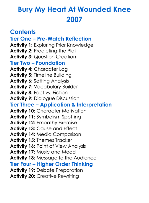 Bury My Heart At Wounded Knee 2007 Worksheet Activity Booklet