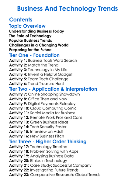 Business And Technology Trends Worksheet Activity Booklet