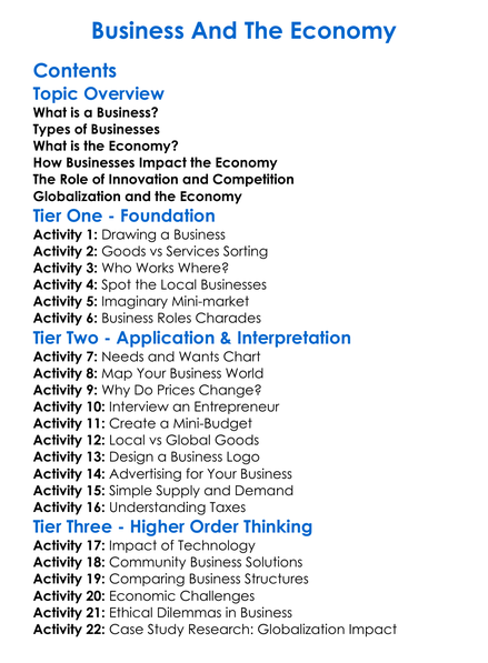 Business And The Economy Worksheet Activity Booklet