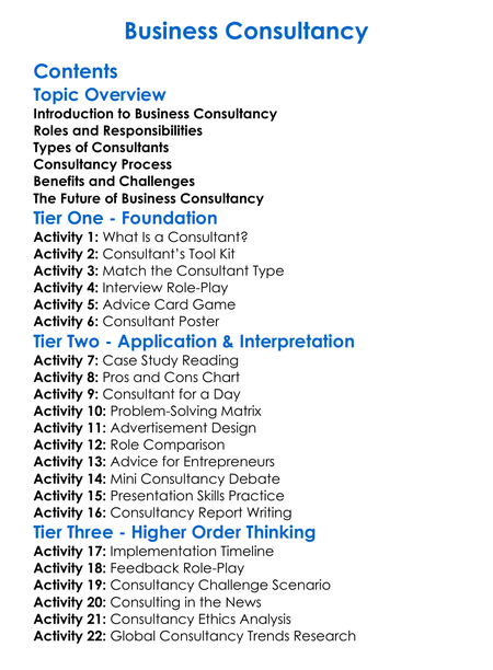 Business Consultancy Worksheet Activity Booklet
