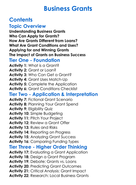 Business Grants Worksheet Activity Booklet