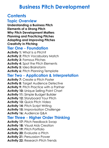 Business Pitch Development Worksheet Activity Booklet