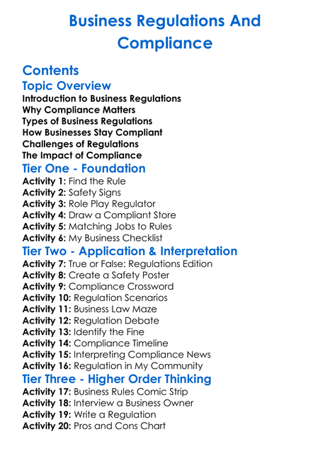 Business Regulations And Compliance Worksheet Activity Booklet