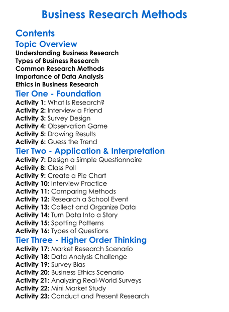 Business Research Methods Worksheet Activity Booklet
