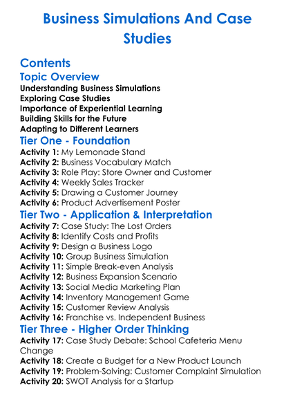 Business Simulations And Case Studies Worksheet Activity Booklet
