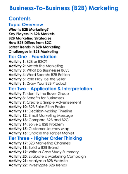 Business-To-Business B2B Marketing Worksheet Activity Booklet