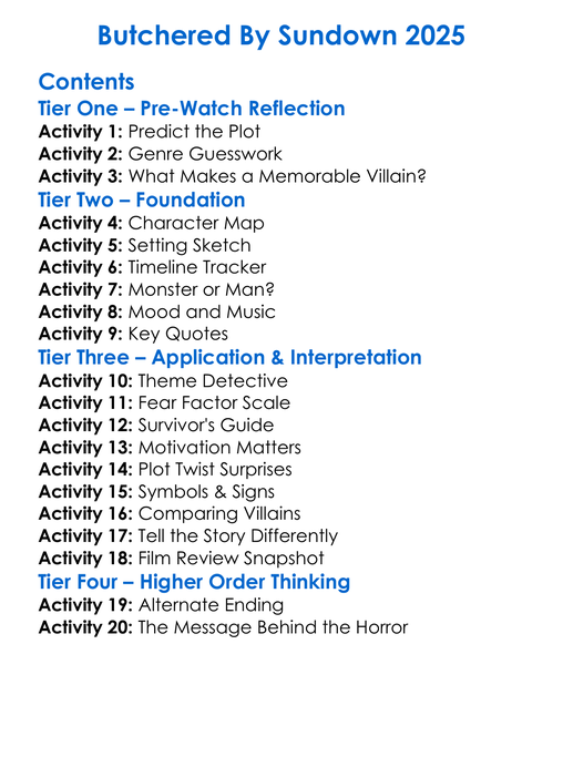 Butchered By Sundown 2025 Worksheet Activity Booklet