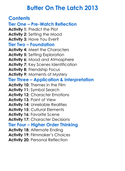 Butter On The Latch 2013 Worksheet Activity Booklet