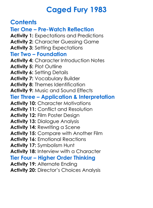 Caged Fury 1983 Worksheet Activity Booklet