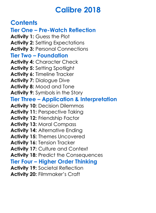 Calibre 2018 Worksheet Activity Booklet