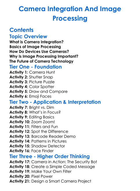 Camera Integration And Image Processing Worksheet Activity Booklet