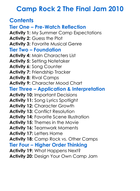 Camp Rock 2 The Final Jam 2010 Worksheet Activity Booklet