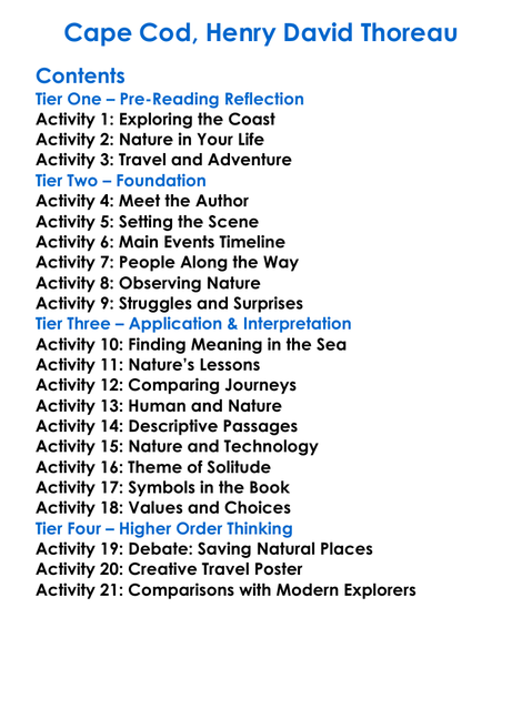 Cape Cod Henry David Thoreau Worksheet Activity Booklet