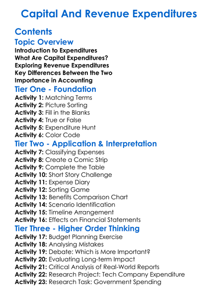 Capital And Revenue Expenditures Worksheet Activity Booklet