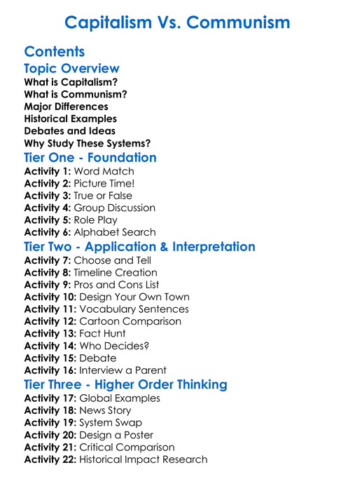 Capitalism Vs Communism Worksheet Activity Booklet