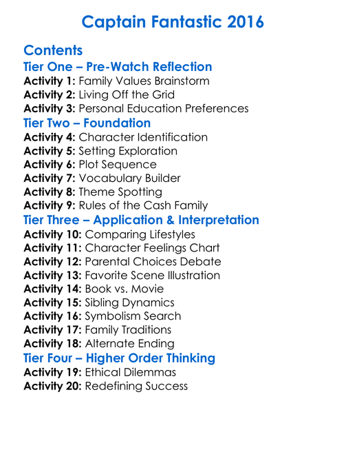 Captain Fantastic 2016 Worksheet Activity Booklet