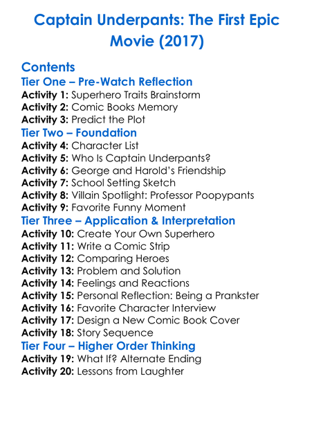 Captain Underpants The First Epic Movie 2017 Worksheet Activity Booklet
