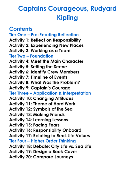 Captains Courageous Rudyard Kipling Worksheet Activity Booklet
