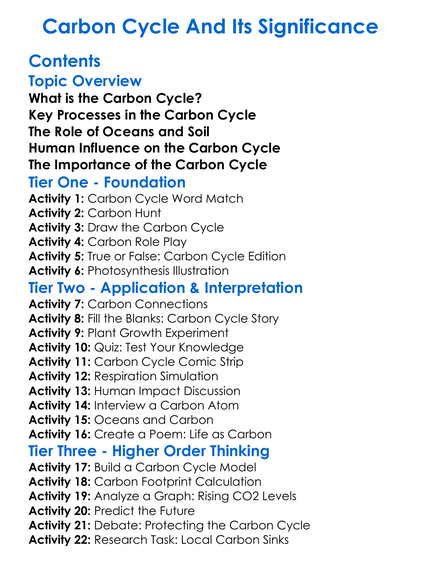 Carbon Cycle And Its Significance Worksheet Activity Booklet