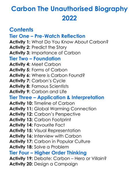 Carbon The Unauthorised Biography 2022 Worksheet Activity Booklet