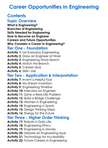 Career Opportunities In Engineering Worksheet Activity Booklet