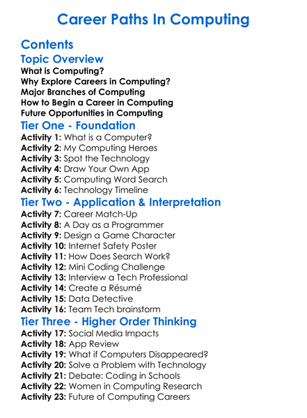 Career Paths In Computing Worksheet Activity Booklet
