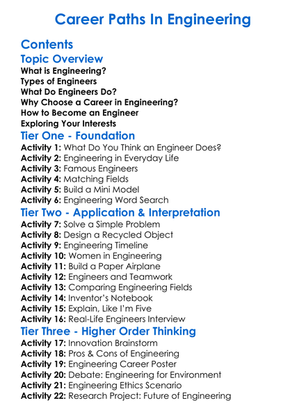 Career Paths In Engineering Worksheet Activity Booklet