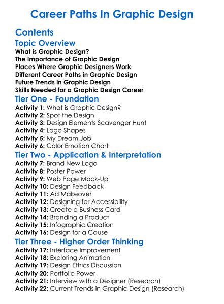 Career Paths In Graphic Design Worksheet Activity Booklet